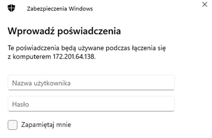 2. Logujemy się do pulpitu zdalnego przekazanymi poświadczeniami.